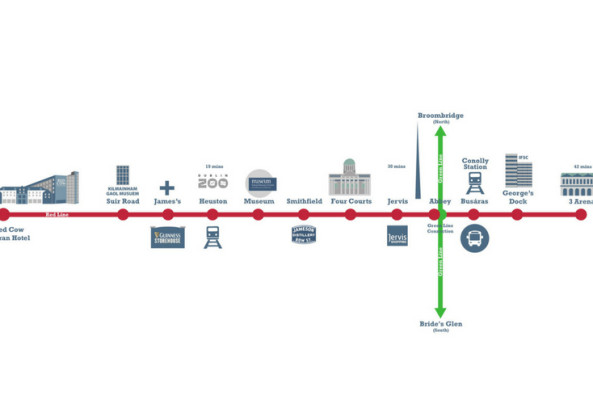 Whether the purpose of your visit is for a family break, to sightsee, visit the many art galleries and museums of this historic city, attend a concert or shop 'till you drop, the convenient location of the Red Cow Moran Hotel makes it the ideal base. Luas, Dublin’s (lite rail) tram system is the best way to discover Dublin during your visit. There is a 'Red Cow' (red line) stop approximately a six minute walk from the hotel that runs from Tallaght to the Point (3Arena) through Dublin City Centre, with stops along the way leaving you close to many of the top tourist attractions.